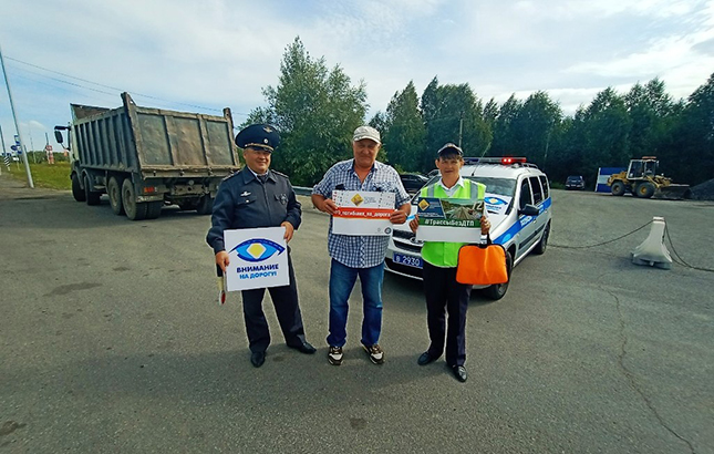 На федеральной автодороге Тюмень-Ханты-Мансийск сотрудники госавтоинспекции вместе с государственными инспекторами Северо-Уральского Межрегионального государственного автодорожного надзора Федеральной службы по надзору в сфере транспорта организовали проведение информационно-пропагандистской акции «Трасса без ДТП».