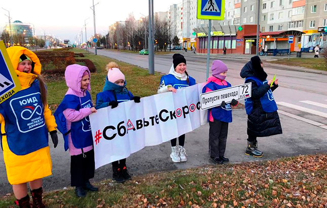 Юидовцы Тобольска напомнили тоболякам о соблюдении правил дорожного движения, проведя пропагандистскую акцию «Пропусти пешехода».