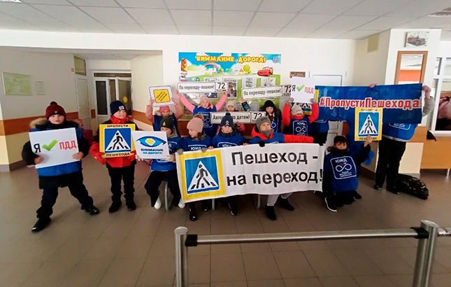 Юные инспекторы движения призвали водителей соблюдать ПДД, учитывать дорожную обстановку при управлении транспортом и сбавлять скорость вблизи пешеходных переходов.