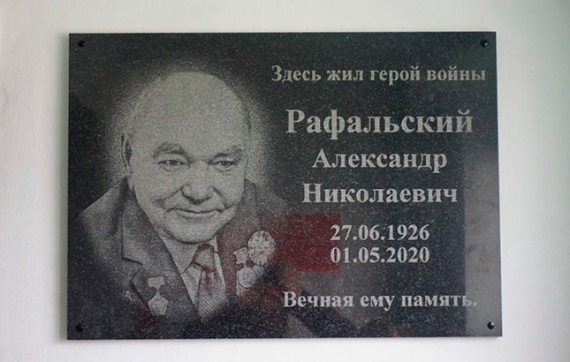 Александр Николаевич Рафальский вновь по-доброму улыбается с памятной доски. Её установили в подъезде дома № 10 в 8 микрорайоне, где жил ветеран Великой Отечественной войны.