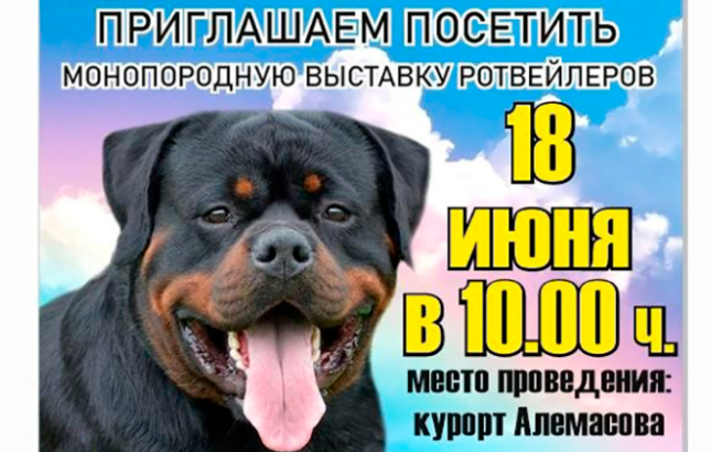 18 июня кинологическое объединение «Лидер» города Тобольска организует ГЛАВНУЮ ВЫСТАВКУ ПОРОДЫ РОТВЕЙЛЕР!!!