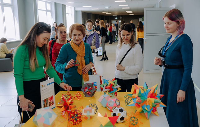 На интенсивах можно будет на практике оценить инновационные материалы и пособия, используемые в обучении. Для этого будет организована стендовая сессия, где будут представлены инженерные движущиеся устройства от инженерного клуба «Геккон», различные головоломки - от шарнирных до разборных, коллекция моделей правильных и полуправильных многогранников и их звездчатых форм, а также устройства, иллюстрирующие работу основных компонентов и узлов электроники - транзисторов, операционных усилителей, счетчиков и логических вентилей и т.д.