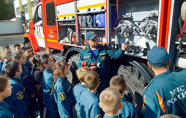 Затем вниманию кадетов был представлен пожарный автомобиль, оснащенный специальным аварийно-спасательным оборудованием. Ребята узнали, за какое время пожарные должны прибыть к месту вызова и как правильно организовать спасение людей и тушение пожара, сообщают в областном МЧС.