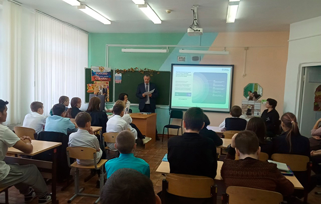 26 сентября общественный урок для учащихся 8 и 9 классов провел депутат Тобольской городской думы Эдуард Махмутов. Эдуард Рудольфович рассказал школьникам о достопримечательностях нашего города. Подростки задавали вопросы и с большим интересом обсуждали услышанную тему.