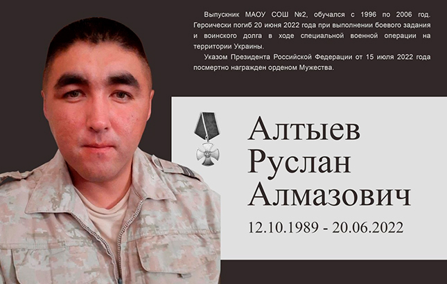 На фасаде школы №2 появилась мемориальная доска с именем выпускника этой школы Руслана Алтыева, погибшего в ходе специальной военной операции.