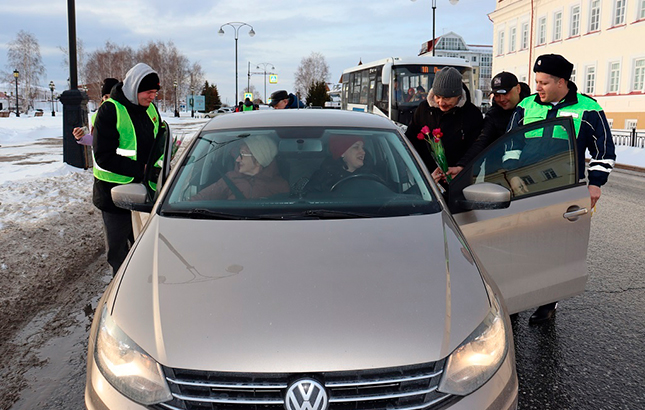 Тобольские автоинспекторы провели акцию «Цветы для автоледи»