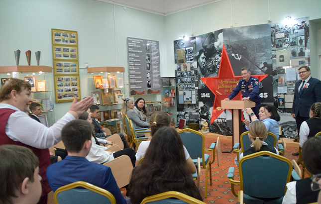 Руководитель музея Надежда Крюкова завершила «Урок Героя» прекрасными стихами выпускника школы 1941 года и пригласила гостей на мини-путешествие по музею, которое провели школьники-экскурсоводы.