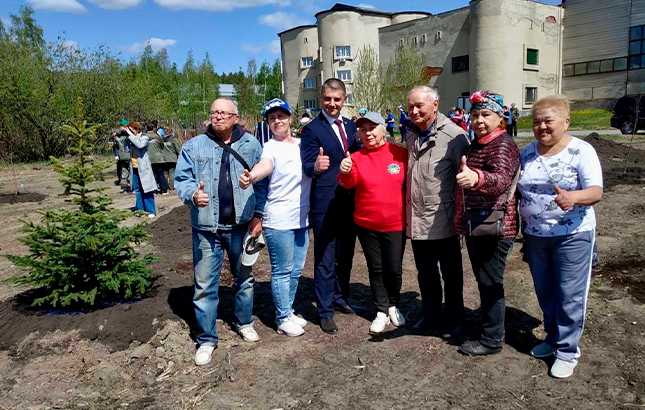 Администрация и Совет ветеранов Тобольска высадили деревья в новом парке Победы в Тюмени